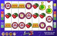 Lucky 7's slot machine has 7 reels and 7 pay lines, and it takes one